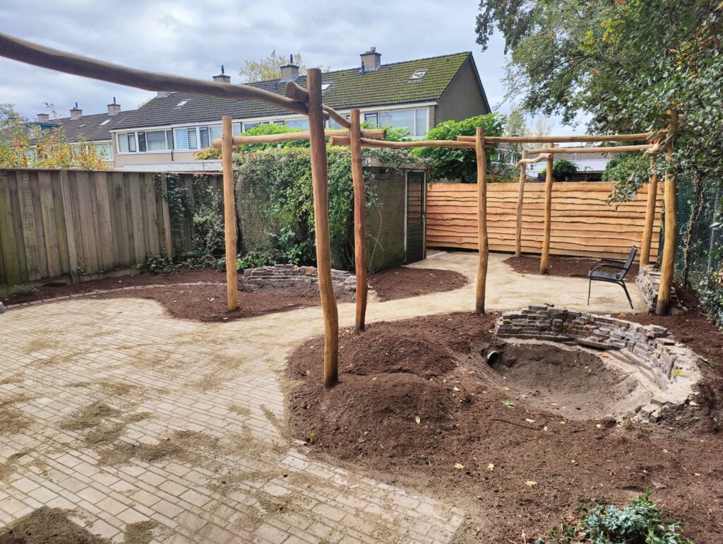 Project Enschede: Stapelmuur – Wadi’s met koppelbuis – Pergola en Bestrating